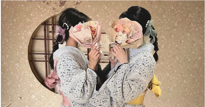 プロの着付けで一日中着崩れしない、上品なレンタル着物に着替えて京都の四季をお楽しみください。